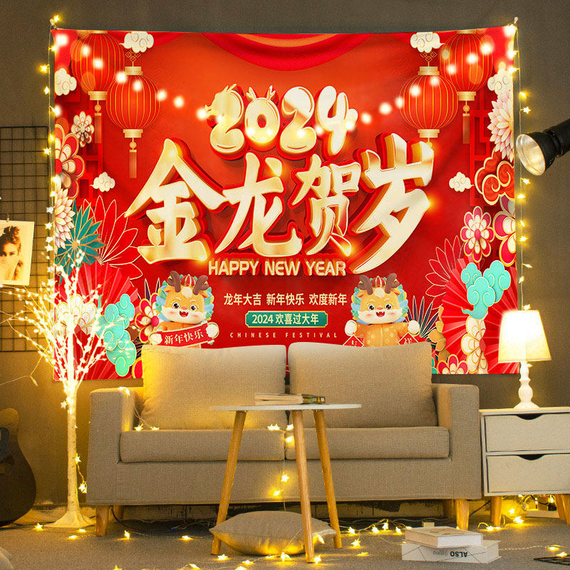 2024 New Year's New Year's New Year's New Year's Eve Festive Mood Decoration Background Buxi Celebrating the Spring Festival Annual Meeting Arranged Scene Banners-Taobao