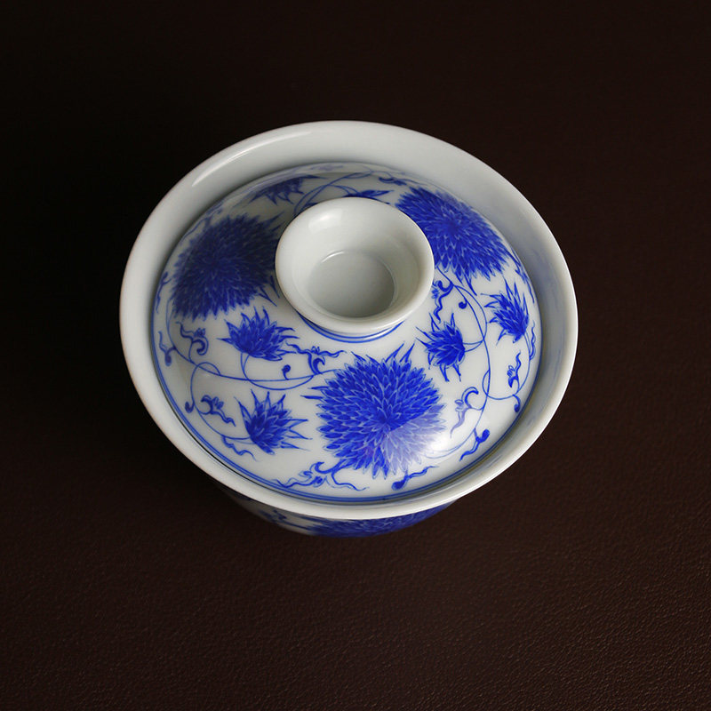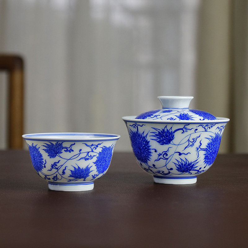 Tangy Chamomile Handmade Cover Bowl Imitation Ancient Green Flowers Two Talents Bowl Thin Tire Tea Bowl Rock Tea Small Cover Bowl Jingdezhen Hand-painted Porcelain-Taobao