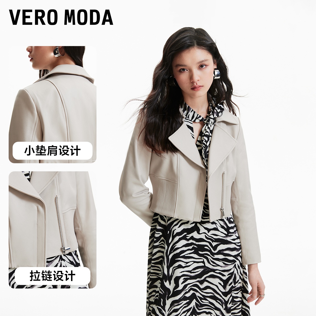 Vero Moda fur coat woman 2024 early spring new riding wind short zipped sheep leather leather fashion jacket jacket-Taobao