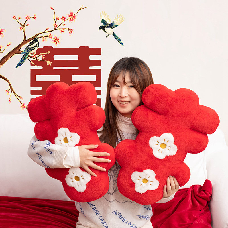Happy words with pillow press-bed dolls a couple of wedding houses arranged with happy words Pillow Newlyweds Wedding Gifts-Taobao