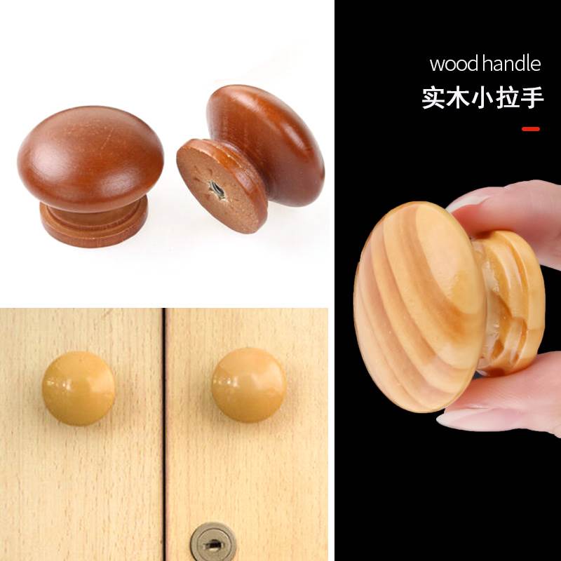 Solid wood single-hole small handle round log handle drawer wardrobe cupboard door handle wood mushroom round wood handle-Taobao
