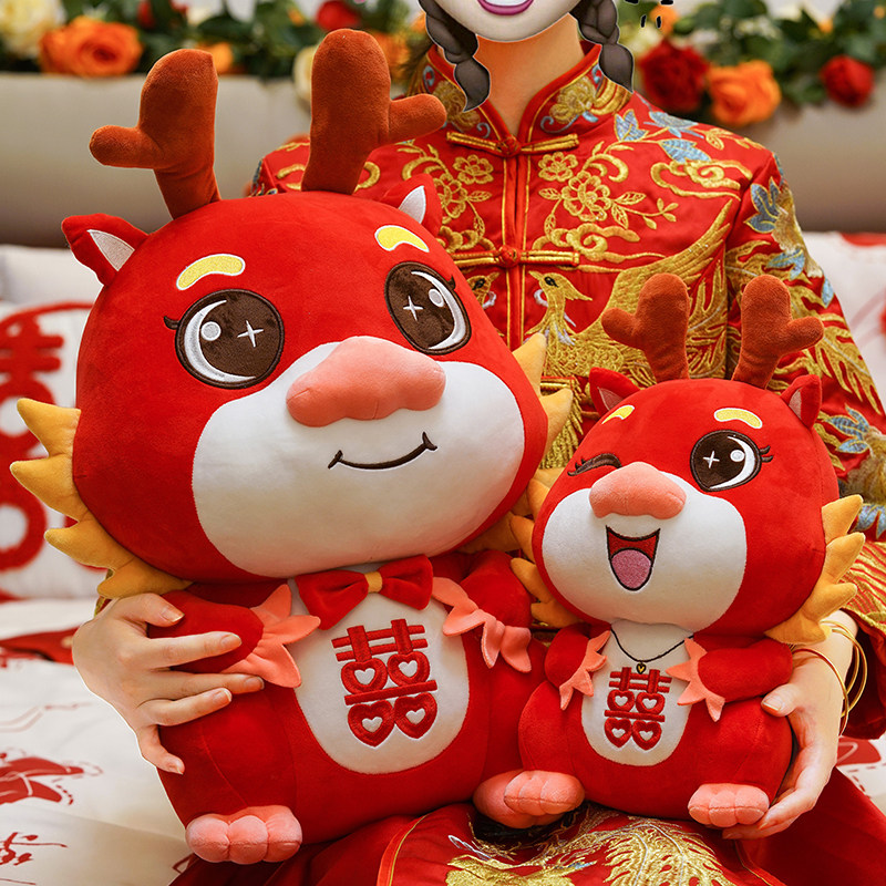Midsummer confide in 2024 new dragon baby pressed bed dolls a couple of wedding happy words to accompany a new wedding gift-Taobao
