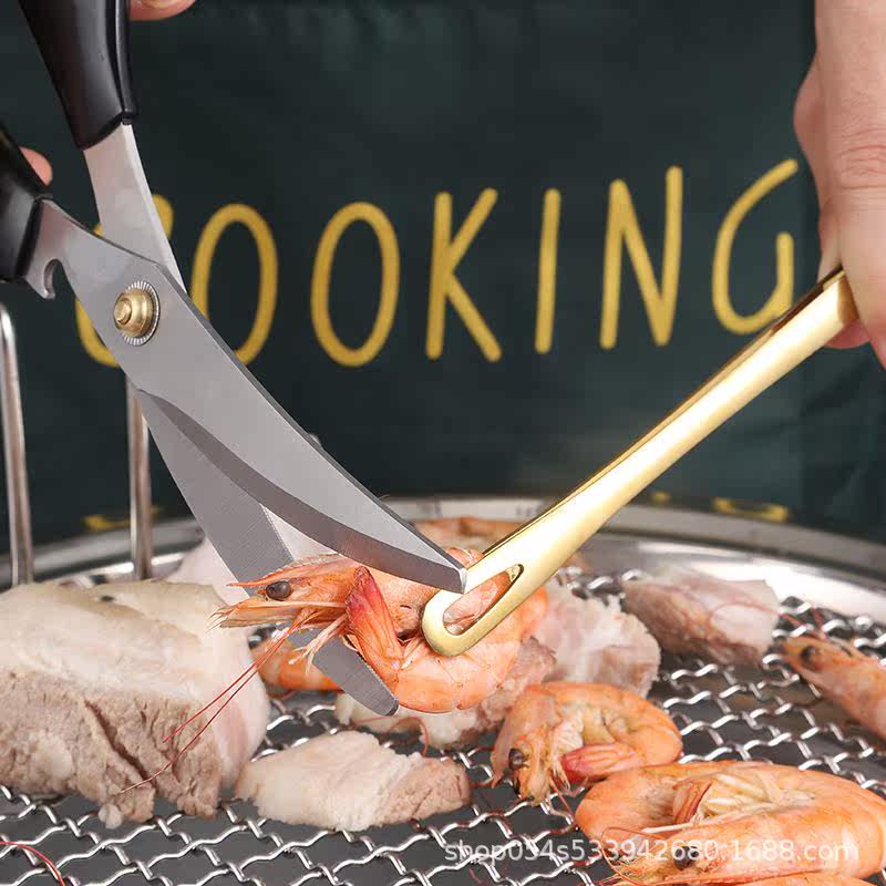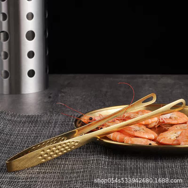Manufacturer Straight for Han style 304 Stainless Steel Barbecue Clip Golden Buffet Food Beef Steak Lengthened Roast Clip-Taobao