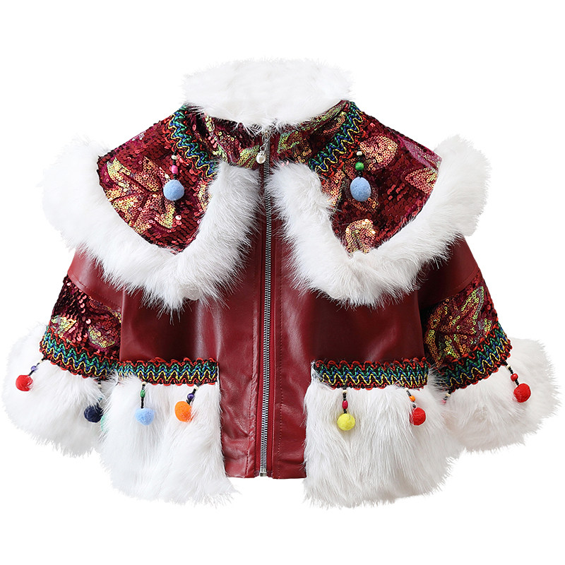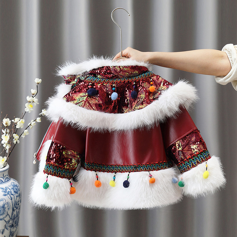 Girl's winter style cotton clothes national wind imitation leather grass jacket children thickened Chinese New Year leather clothes trendy baby winter dress cotton clothes-Taobao