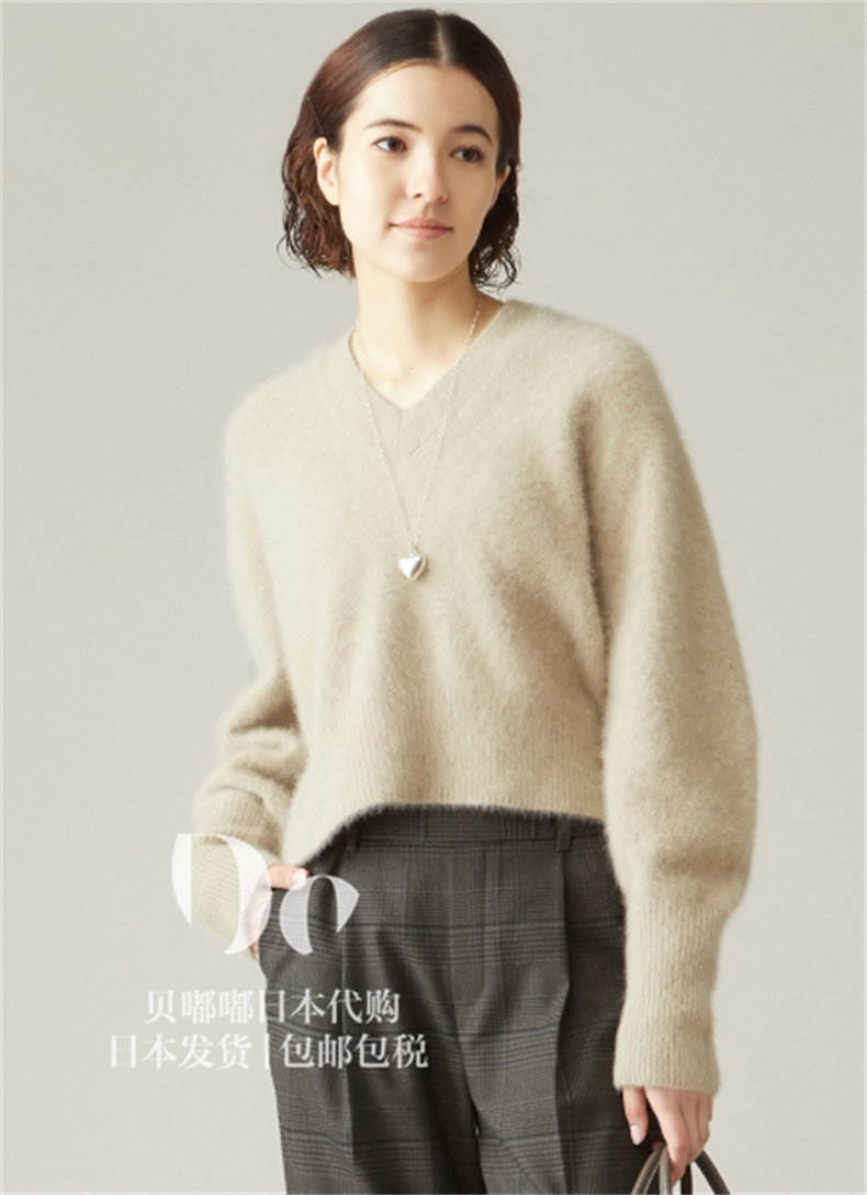 Beep beep Japan purchase of martinique fox fur mixed V collar cloud sweater blouses A0333KSW413 -Taobao