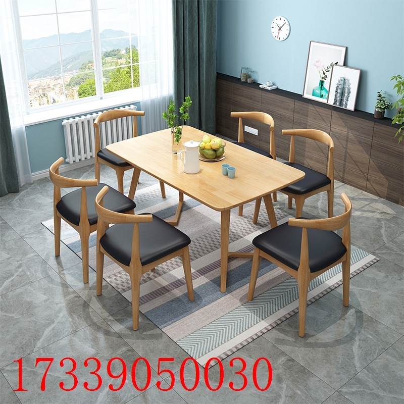 Full solid wood table minimalist fashion restaurant rectangular 4 people 6 people dining table Nordic furniture dining table and chairs combined-Taobao