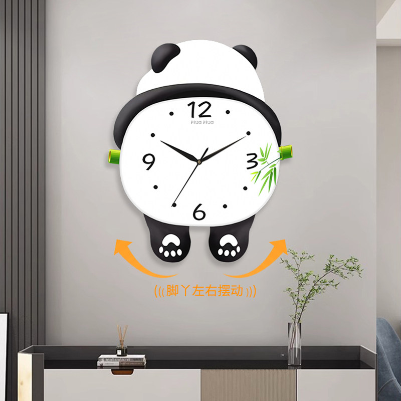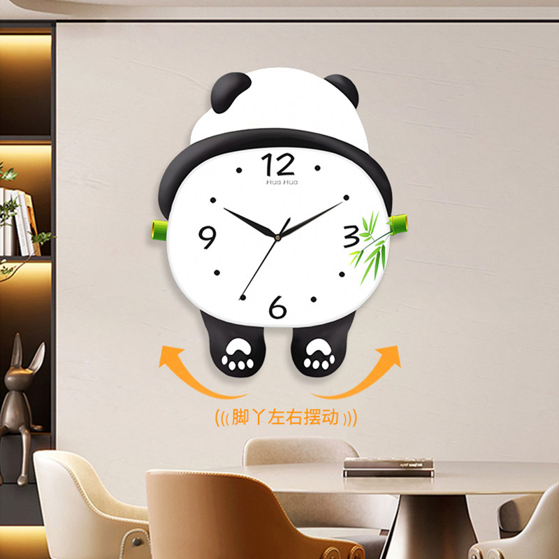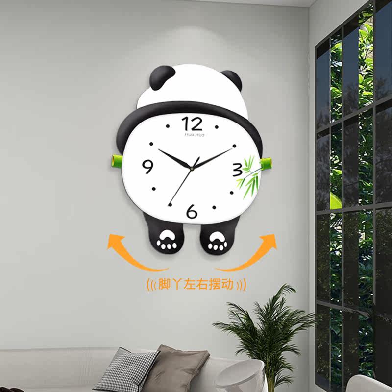 New panda hanging clock living room clock hanging wall calendar creative quartz bell bedroom free of punch hanging watch silent clock-Taobao