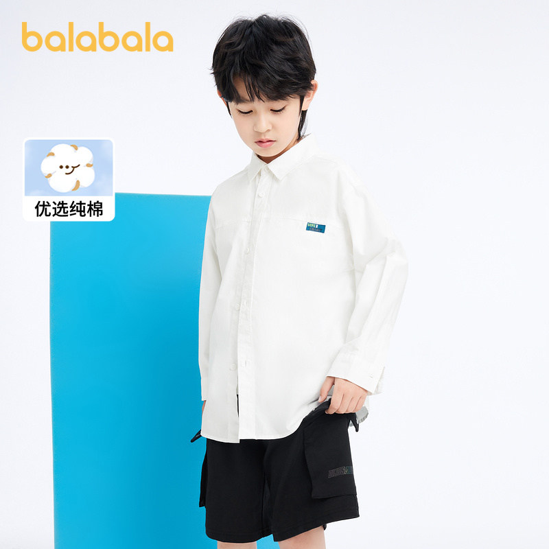 Ballabala children's shirt spring and autumn Chinese CUHK children's clothing pure cotton white shirt boy academy wind performance beating undershirt-Taobao