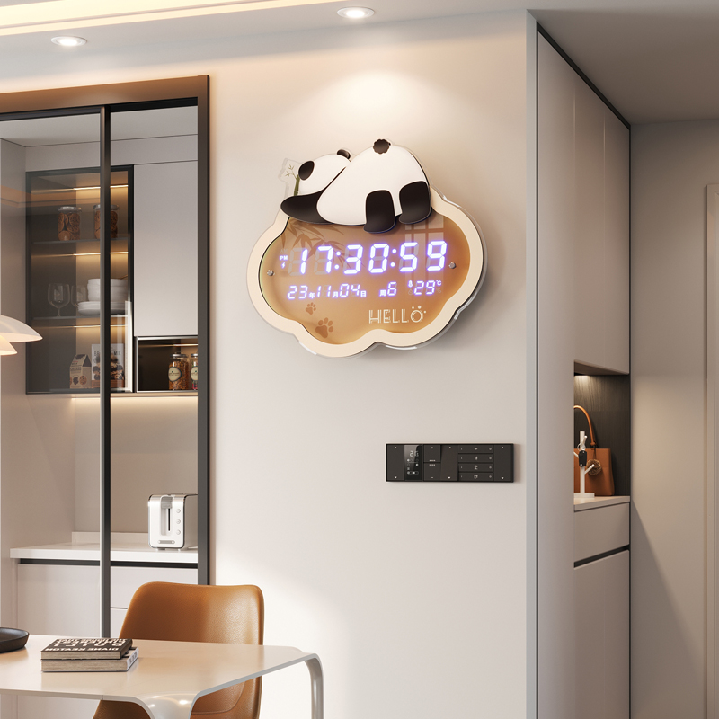 Panda Watch Hanging Clock Living Room 2023 New Atmosphere Perpetual Calendar Electronic Clock Hanging Wall Restaurant Minimyo Creative Clock-Taobao