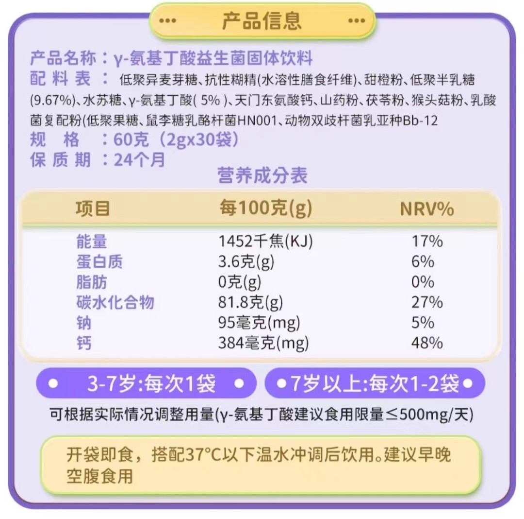 Schbeian y-aminobutyric acid probiotics 3g * 20 bags 3-year-old baby edible official-Taobao