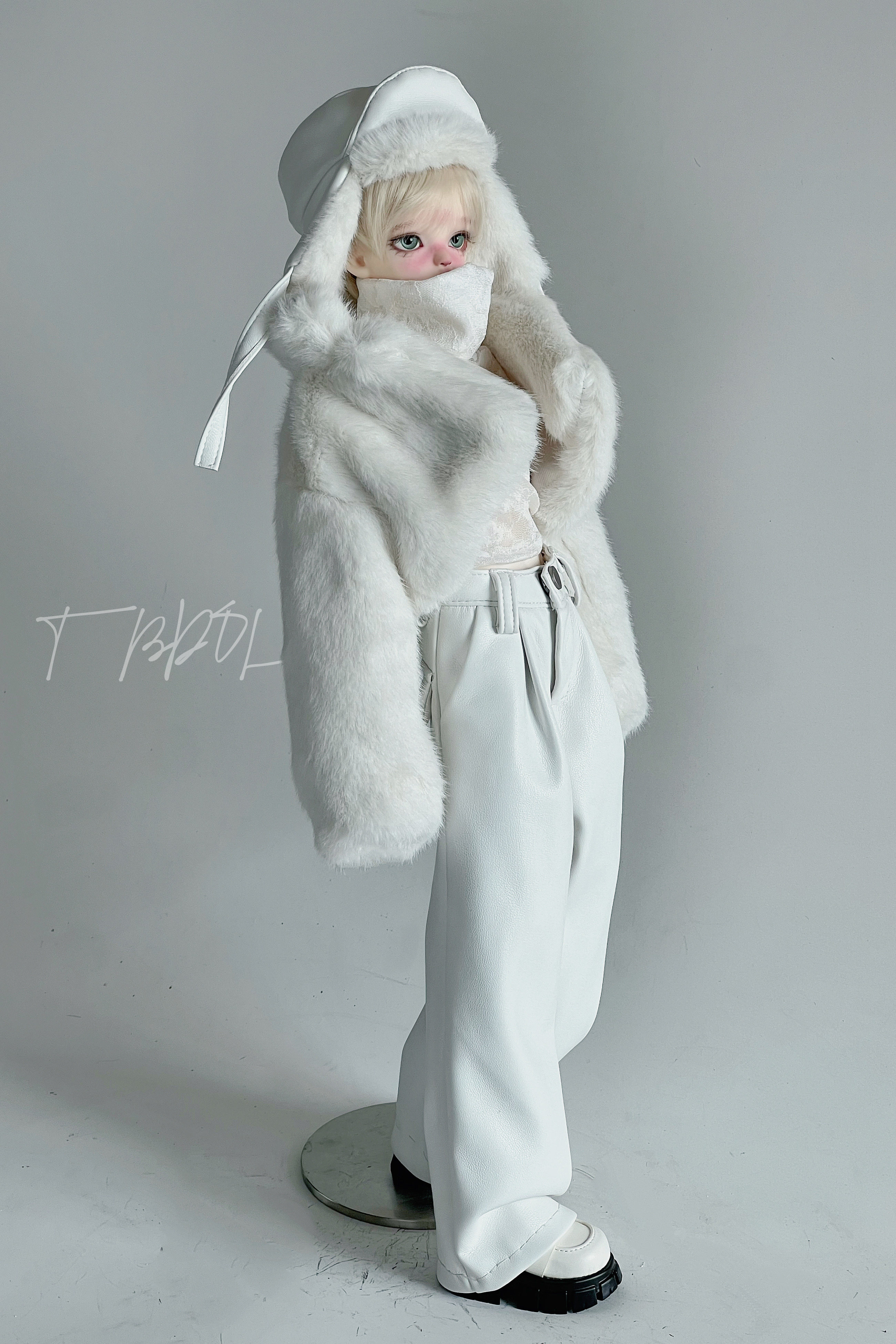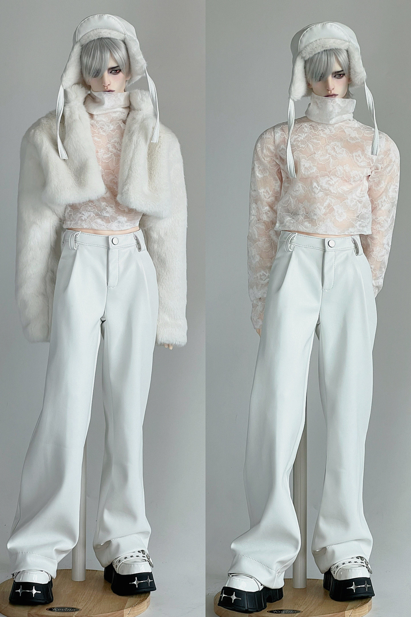 White straight cylinder wide leg leather pants black straight drum leather pants white imitation ferret shorts leather straw jacket black imitation ferret short fur leather grass jacket white elastic lace high collar bottom shirt black elastic lace high collar bottom shirt
