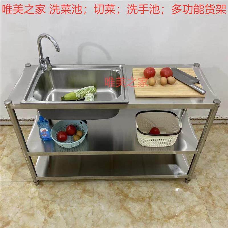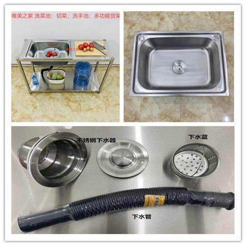 Stainless Steel Simple Sink Kitchen Wash Basin Single Trough Pool Home Dishwashing Pool With Bracket Washbasin Pool Shelf-Taobao