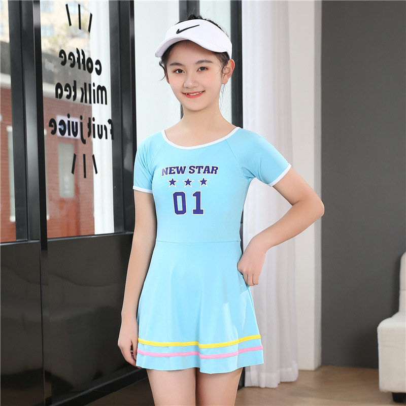 Children's swimsuit one-piece short-sleeved sun protection quick-drying swimsuit for girls, middle and large children outdoor beach hot spring swimsuit sports