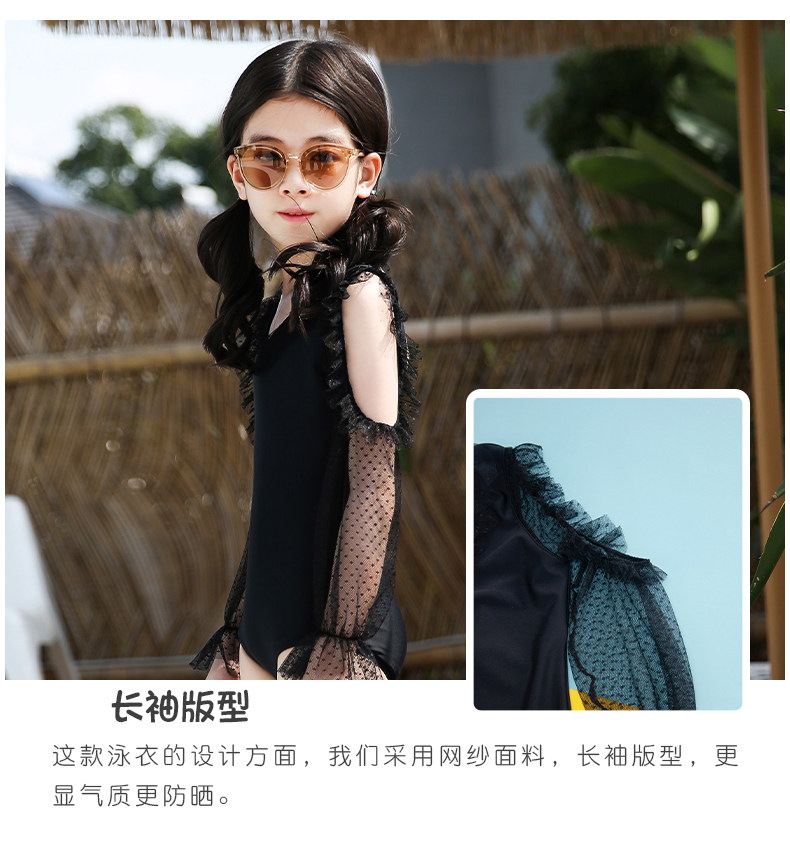 Children's swimsuit Inwind girl black long sleeve sunscreen Conjoined CUHK girl student online yarn spa swimsuit