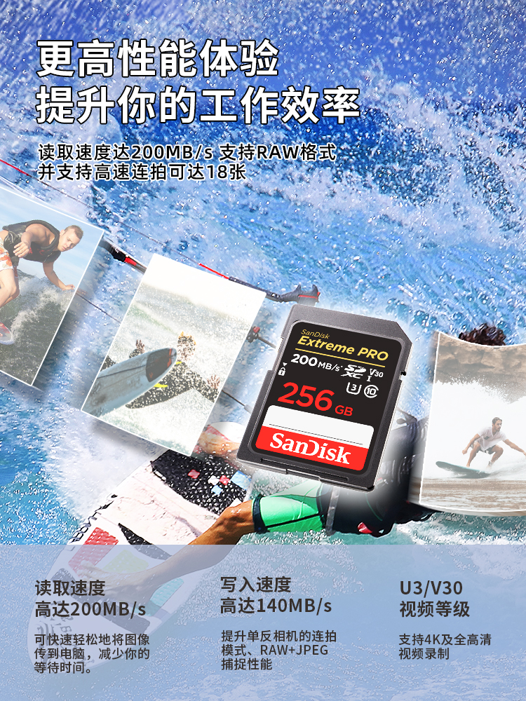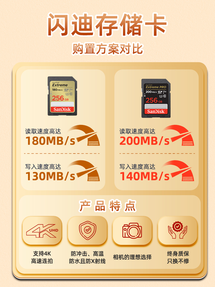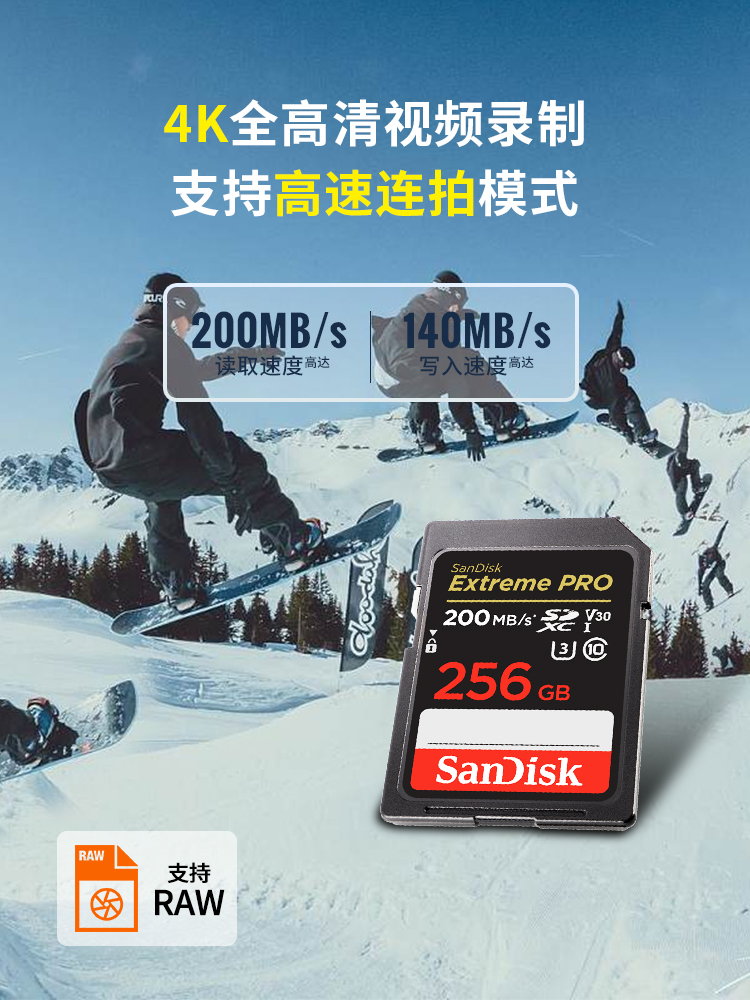 (V30 black card) 256G-200MB s (support for RAW 1080P 4K) (Gold Card) 256G-180MB s (Support RA