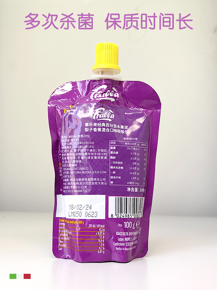 Italian FRULLA bagged banana pears fruit puree with clean no extra added sugar without using concentrated juice-Taobao