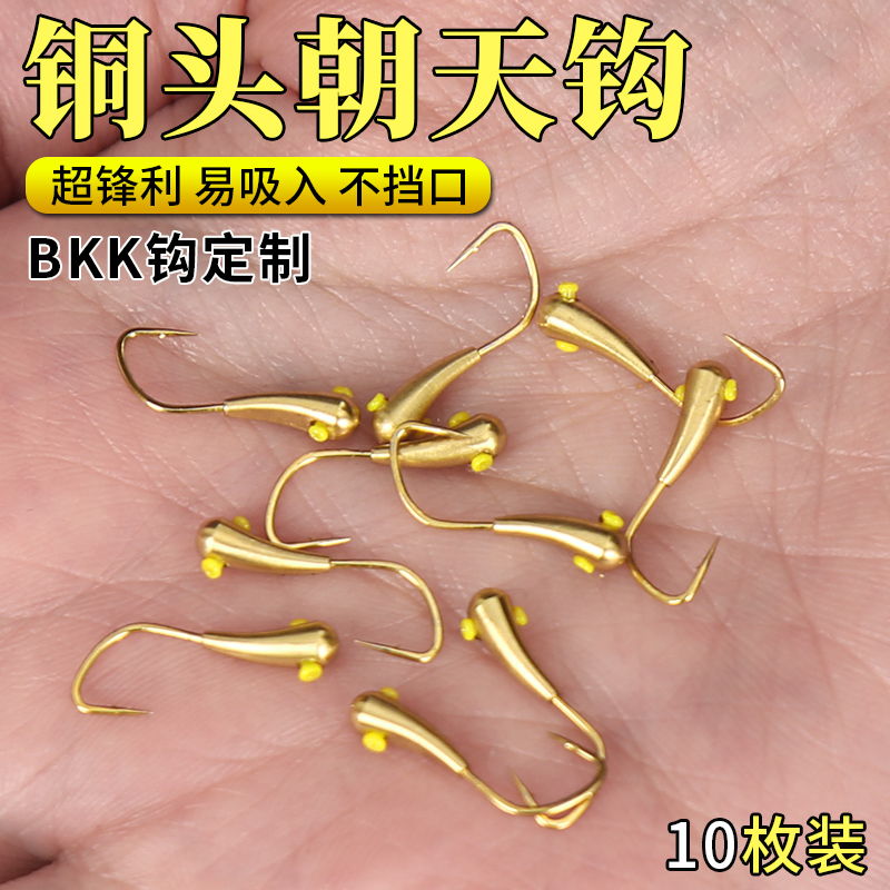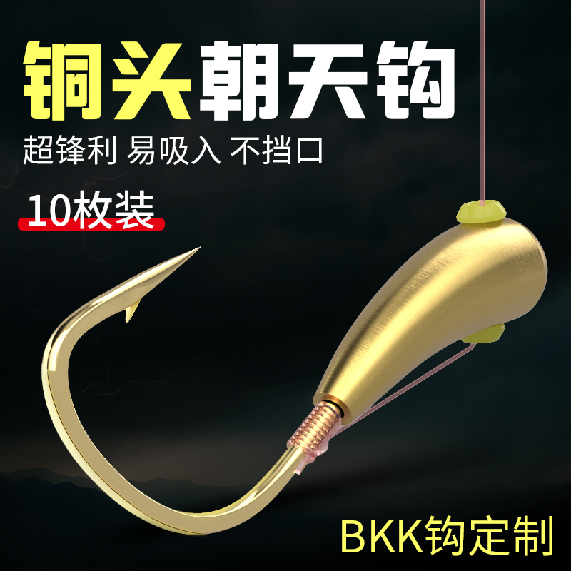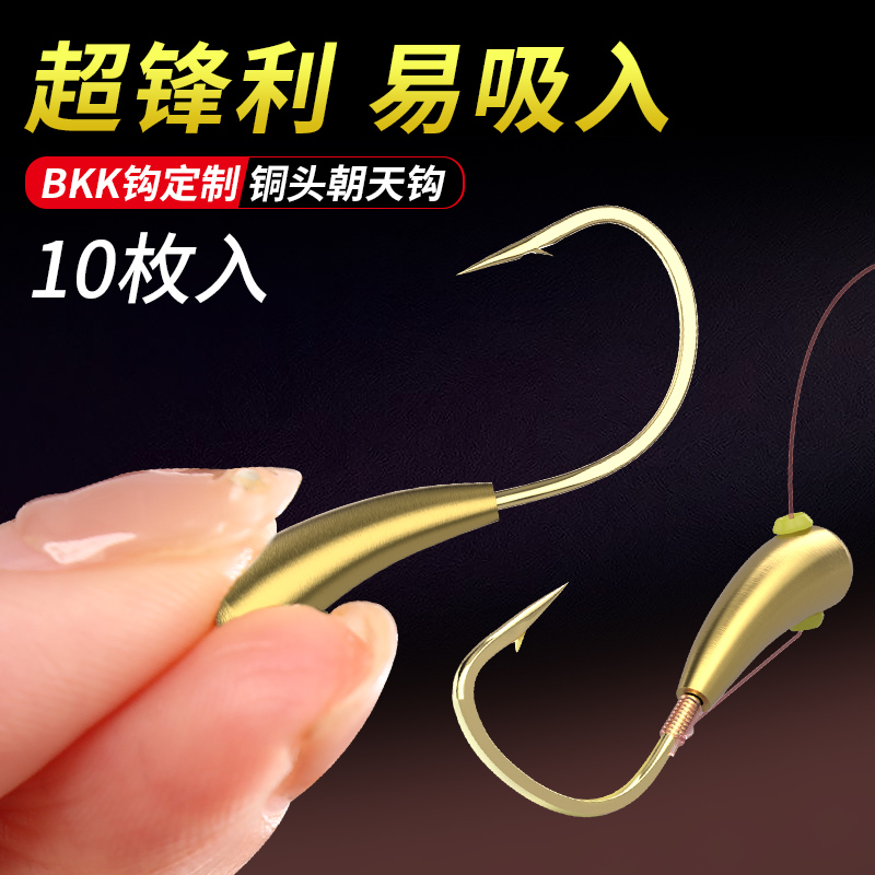 New copper head Dynasty hooked golden sea New Year fish hook obliquely perforated copper pendant wolf tooth high-end imported grass Cave hook-Taobao
