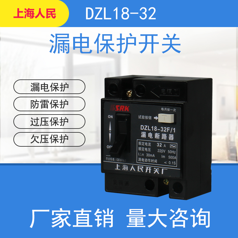 Earth leakage protector DZL18-32F 1 32A 20A electrocution switch 63 An home Shanghai People switch-Taobao