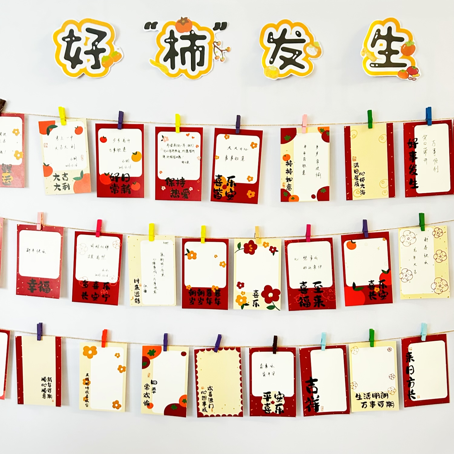 Welcome New Year Primary School Students Class Decorative Wall Stickup to Wall Cards Joycelebrating the Spring Festival Children's Happy Chinese Language Handwritten Cards-Taobao