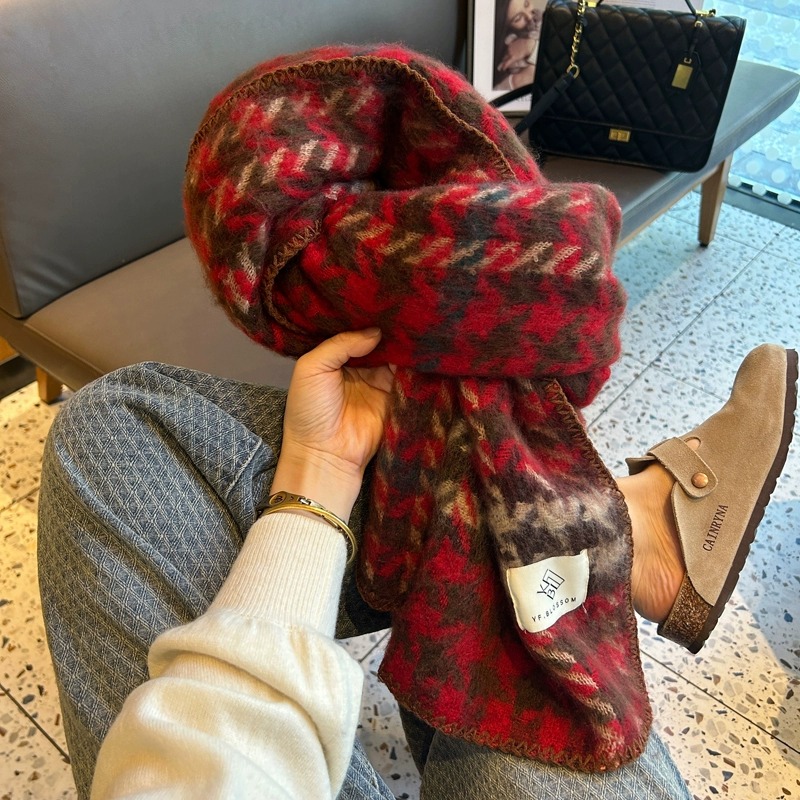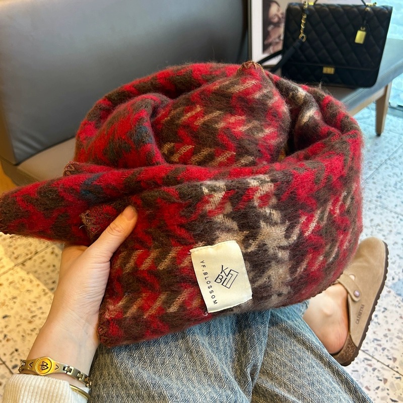 French BGCG Mountain cashmere scarves women Winter Korean version 100 hitch red geometric wrap side shawl skin-skin-warm neck-Taobao