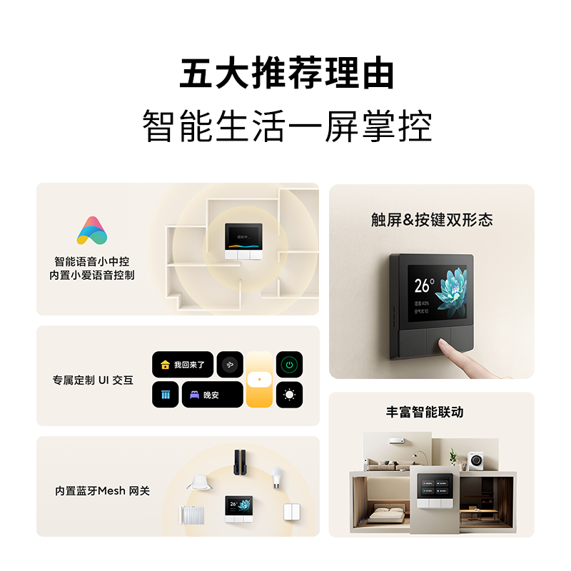 Xiaomi Smart Home Middle Control Panel Small Love Voice Control Mesh Gateway Mijia Full House Smart Home Switch-Taobao