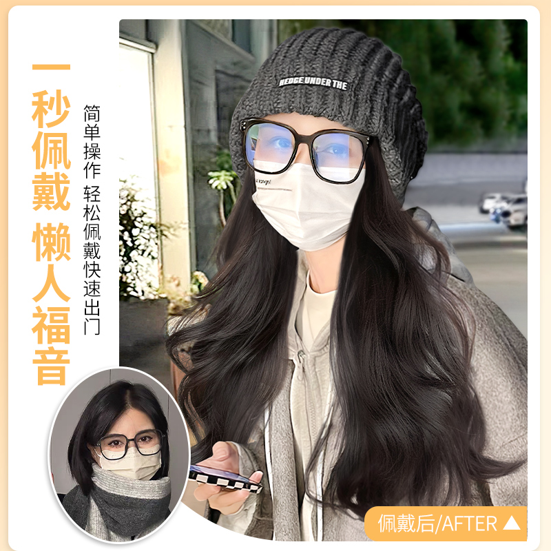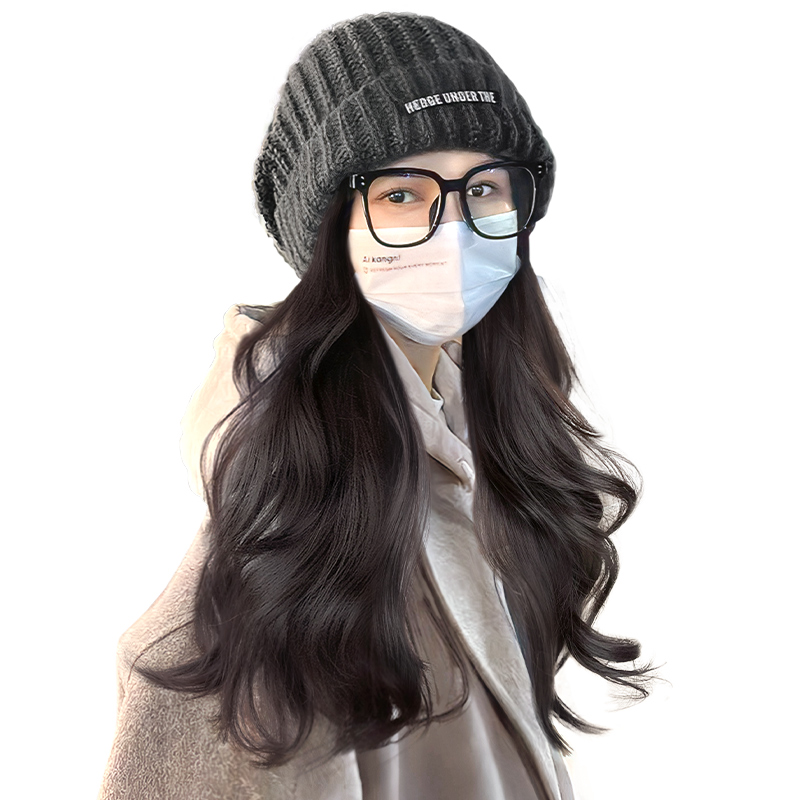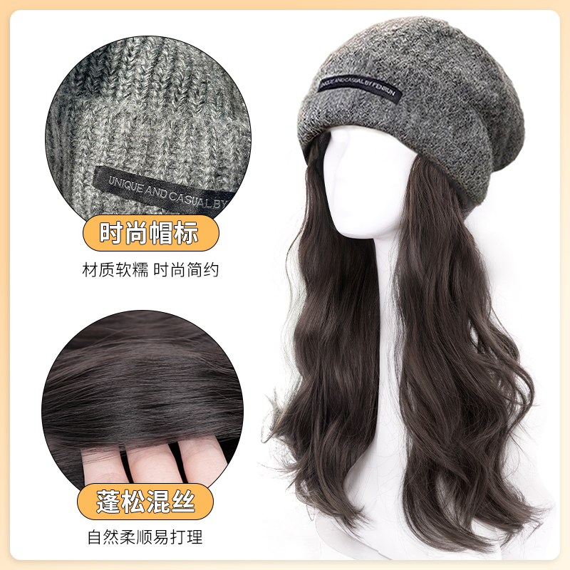 Korean knitted hat (brown black) Three sets Korean knitted hat (brown black) hair nets Korean knitted hat (cold brown) Three sets of Korean knitted hat (cold brown) hair net