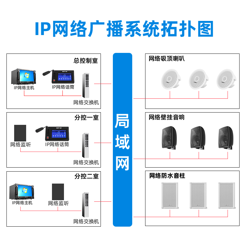 IP501 one 30W (waterproof sound column) IP502 one 50W (waterproof sound column) IP503 one 70W (waterproof sound column) IP504 one 90W (waterproof)