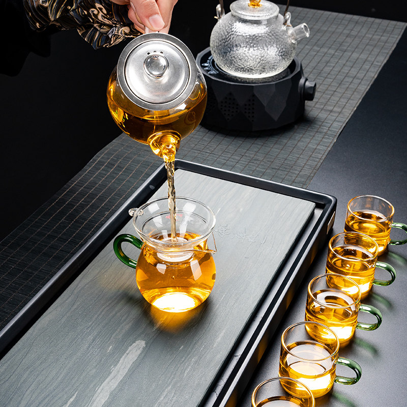 Glass tea set suit 2023 new home transparent teapot tea thickened utility-style tea cup tea-day-style small sleeve-Taobao