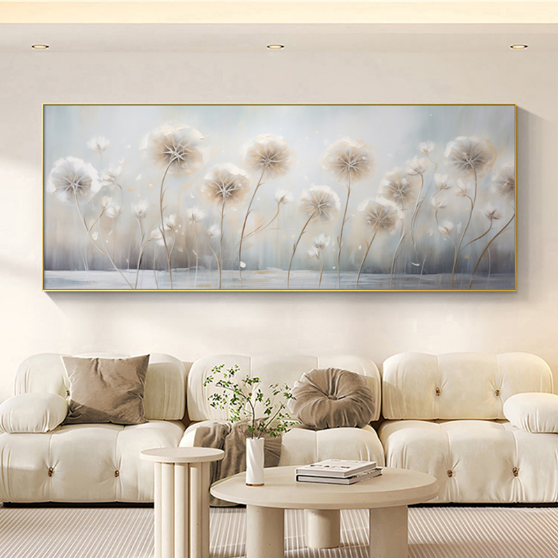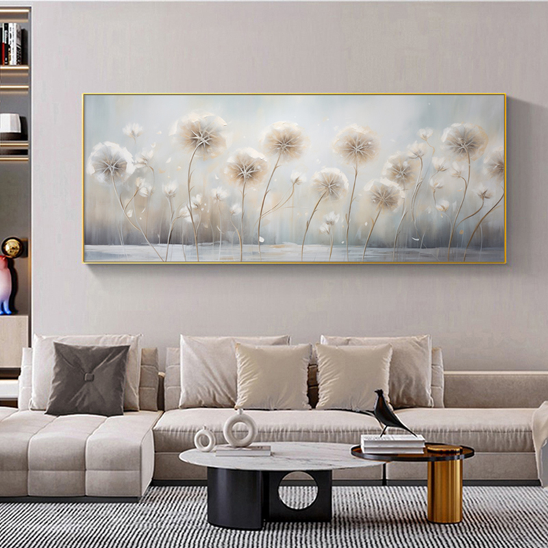 Modern light lavish hand-painted oil painting Dandelion Living Room Sofa Background Wall Decoration Painting Advanced Sensation Abstract Floral Hanging Painting-Taobao