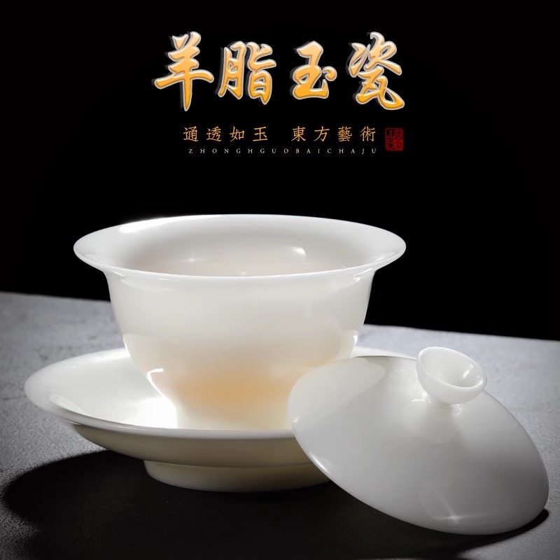 Porcelain middle triobilic pseudonym Artisanal White Porcelain Ice Seed Goat Grease Jade Triple cover Bowl Tea Cup Thin Tire Household Gifts-Taobao