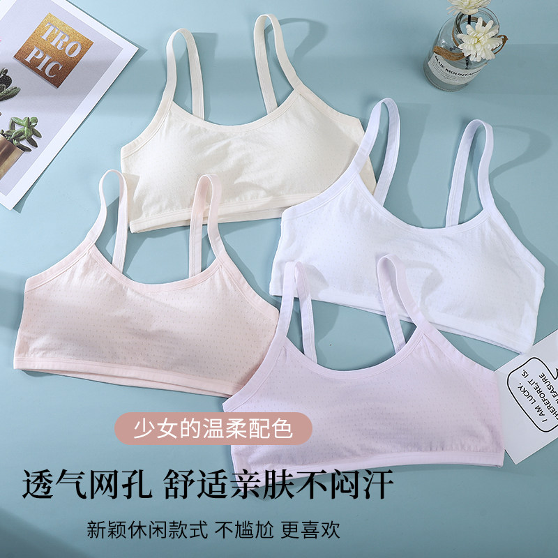 Hair Growing Period Little Girl Underwear Fixed Cups Slim mesh Mesh Vest Elementary School Junior Girls Bra 8-14-year-old breathable-Taobao