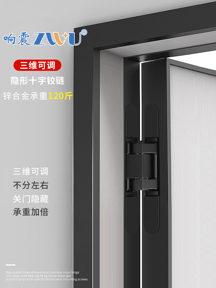Three-dimensional adjustable invisible hinge concealed outside open cross hinged dark door concealed door dark wooden door outer flat open-Taobao