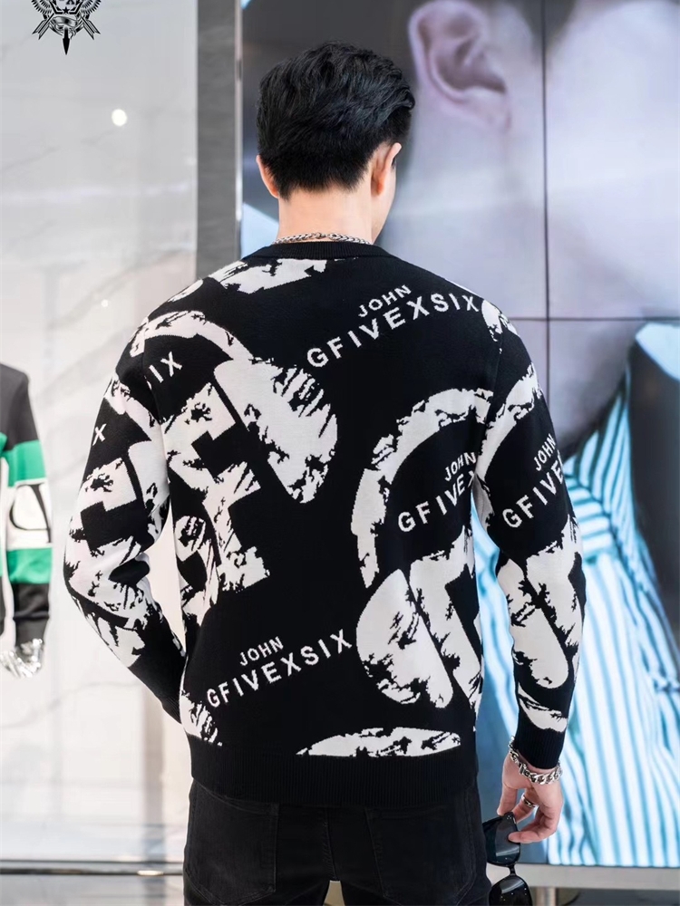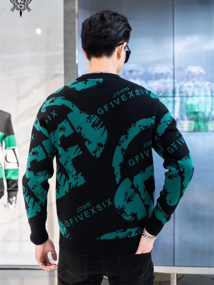 Eurostock 2023 autumn winter new knitwear 100 hitch fashion round collar long sleeve blouse for men's jacquard sweater tide-Taobao