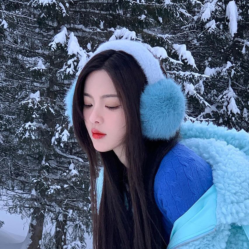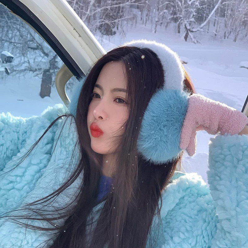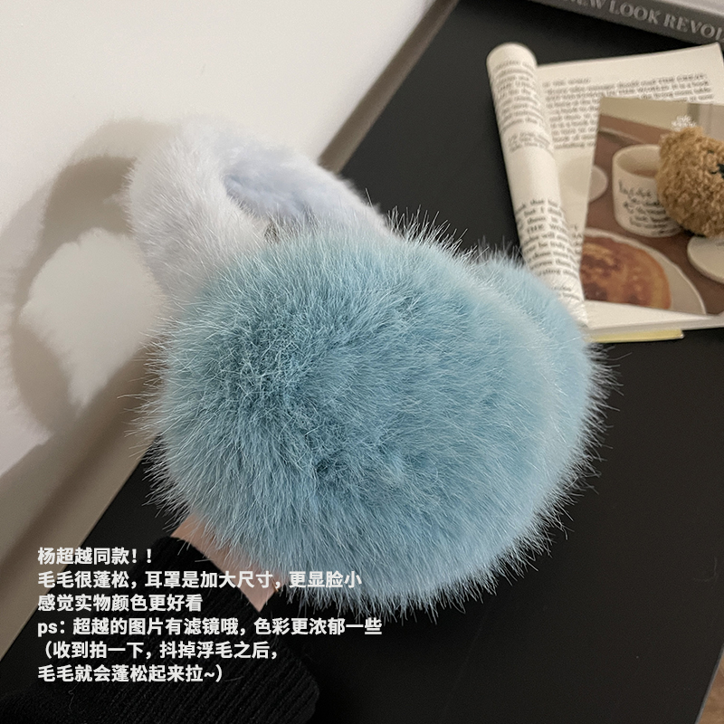 Yang Beyond the same Imitation Fox Fur Ear Hood Woman Winter Blue Big Ear Bag Thickened Fur Ear Warm Windproof Ear Sleeve-Taobao