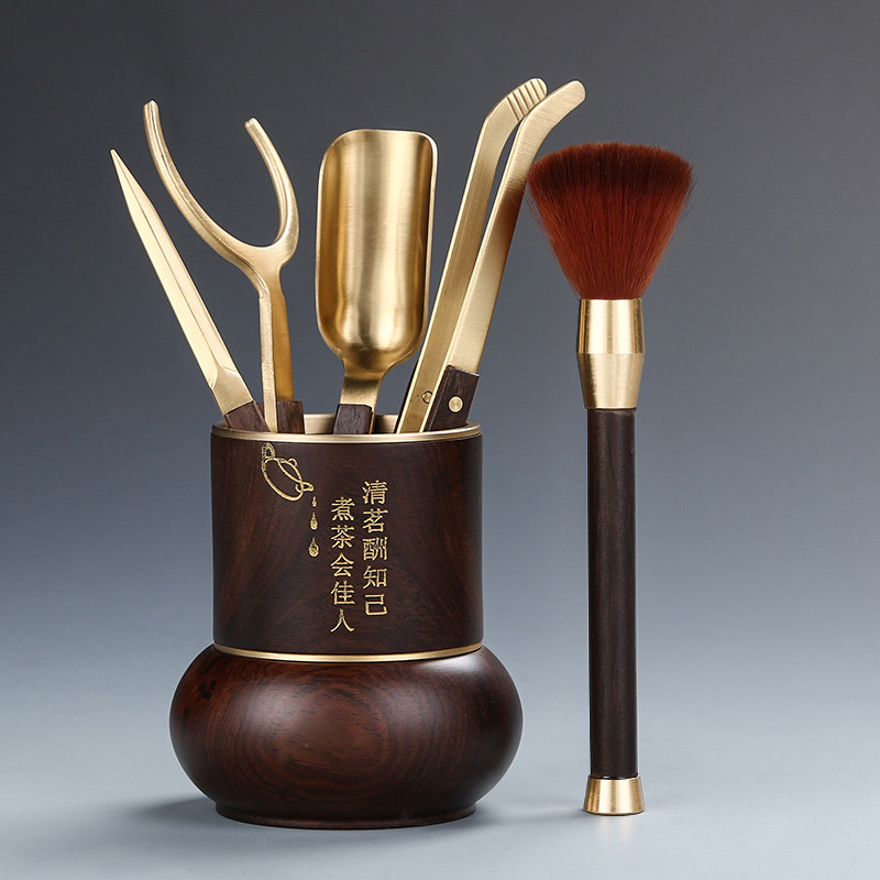 Tea Set Six Gentlemen Suit High-end Korn Tea Accessories Great Full Tea Tool Tea Table Tea Table Pure Brass Pendulum-Taobao