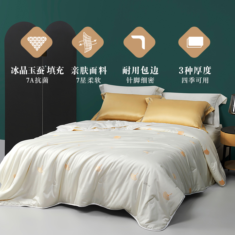 Two-in-one silk quilt of ice crystal jade silkworm gingko effie