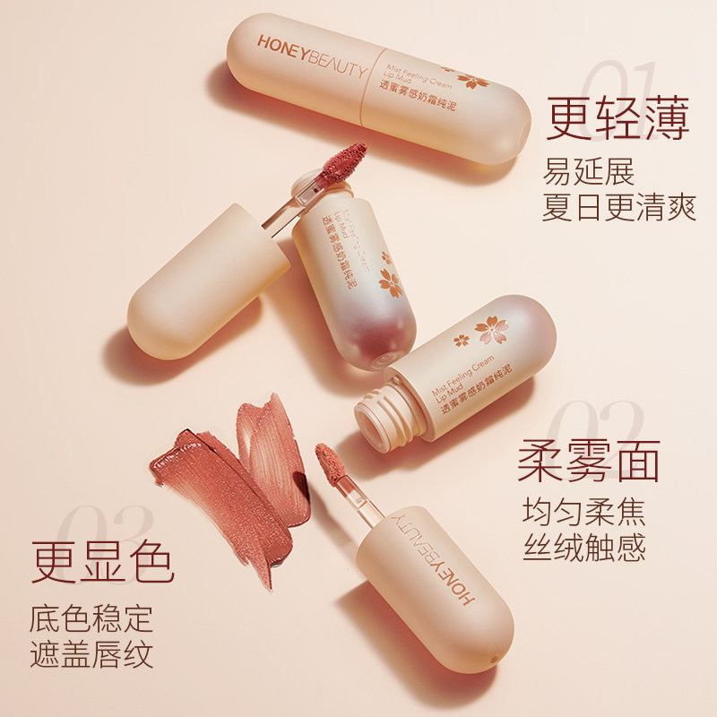 Through Honeymist with Milk Cream Lip Mud 3g Red Pottery Color Lip Glazed Lip Mud Mist Sensual and Persistent Nourishing-Taobao