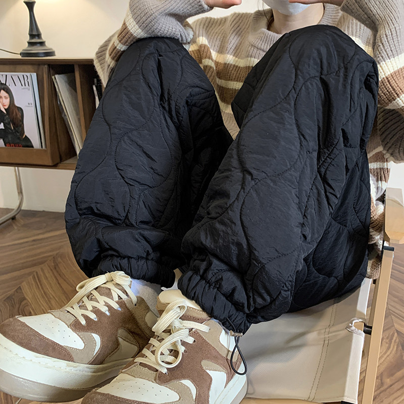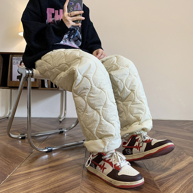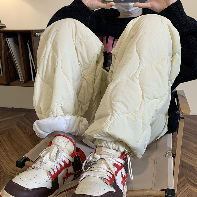 cleanfit pure color clip cotton warm pants winter 2023 new American retro 100 lap straight cylinder bunch foot cotton pants-Taobao