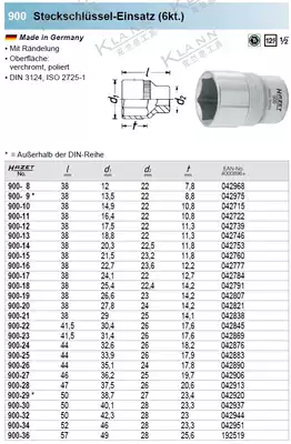 Germany Hachet HAZET 900-21 900-22 900-27 900-30 Hexagon Sleeve Dafei 1 2