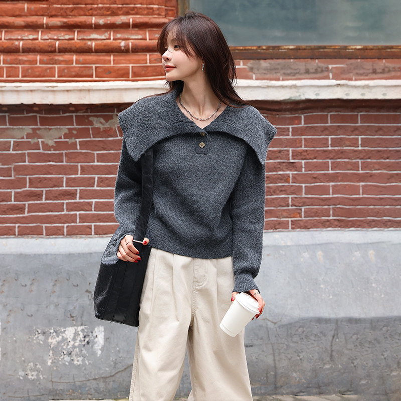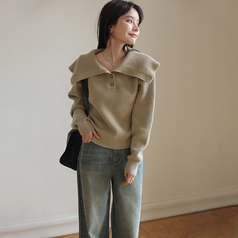 Uth's autumn winter new vintage retro-collar casual knit sweaters-Taobao