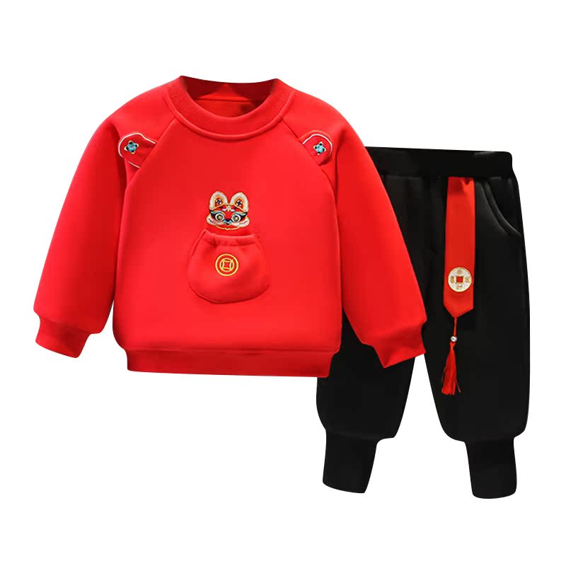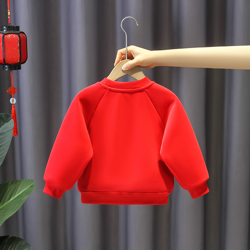 Boy 2024 new red festive sweatshirt Two sets of baby winter plus suede Thickened Beiyr Clothes Children Suit-Taobao