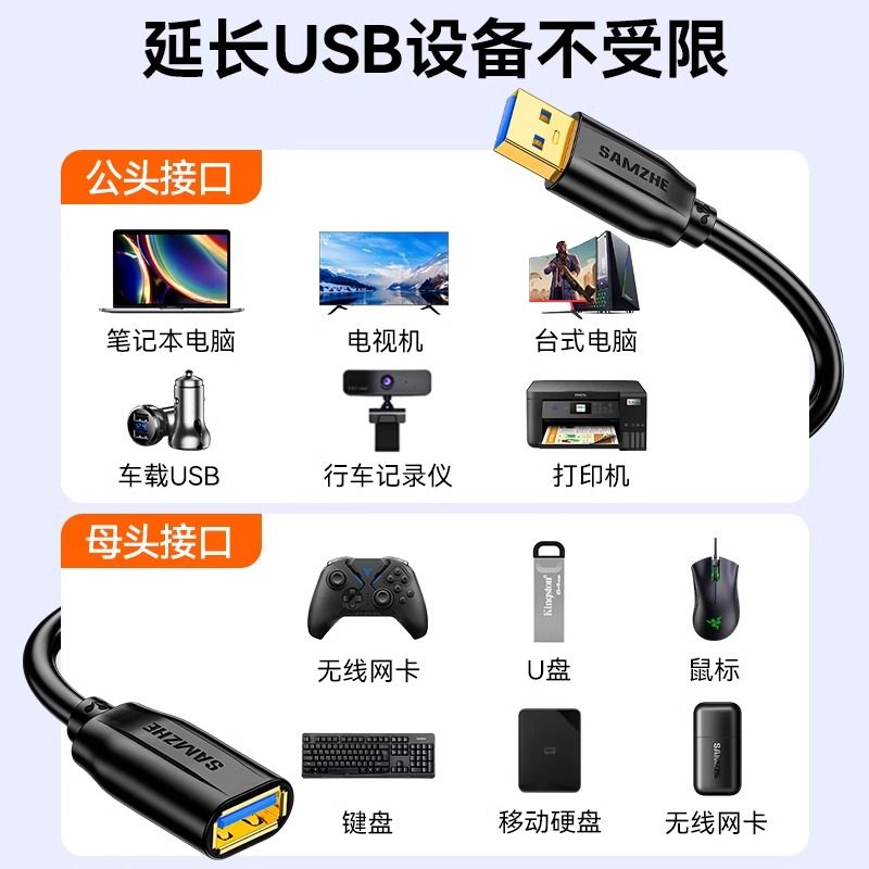 Mountain Zusb extension cord 3 0 male lengthened 1 3 5 m data wire computer TV printer wireless network card on-board connection keyboard mouse U pan connector transfer lengthened line 1068 -Ta
