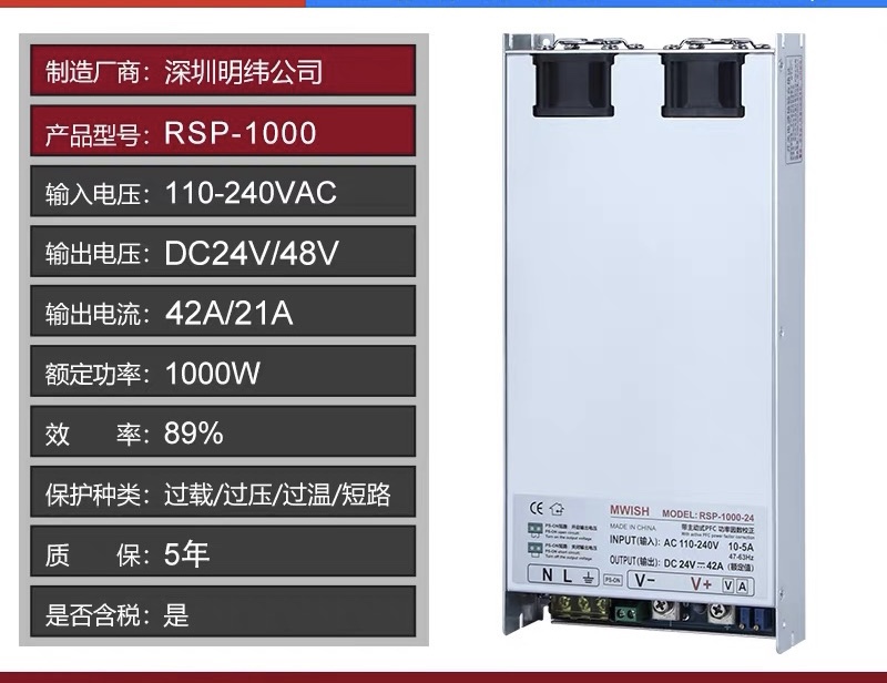Taiwan MEAN WELL high power RSP-500W1000W DC 2000W3000W PFC switching power supply 24V48 volts