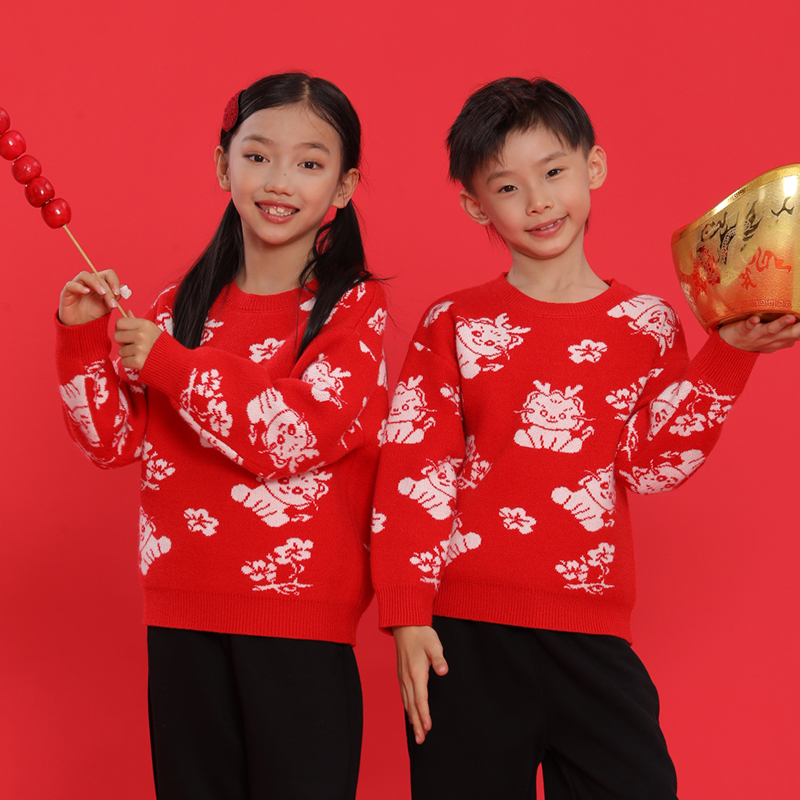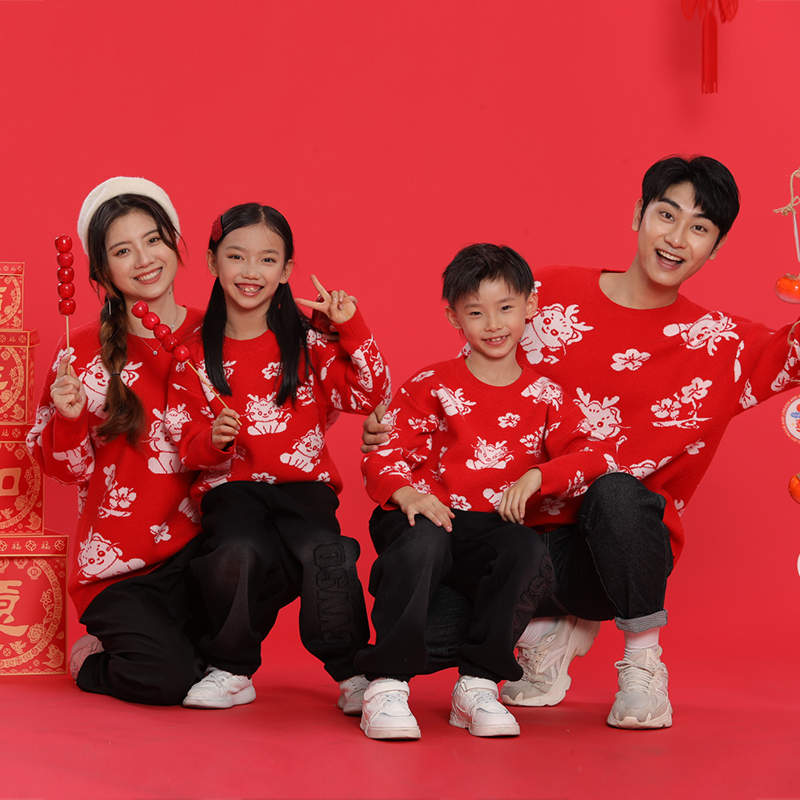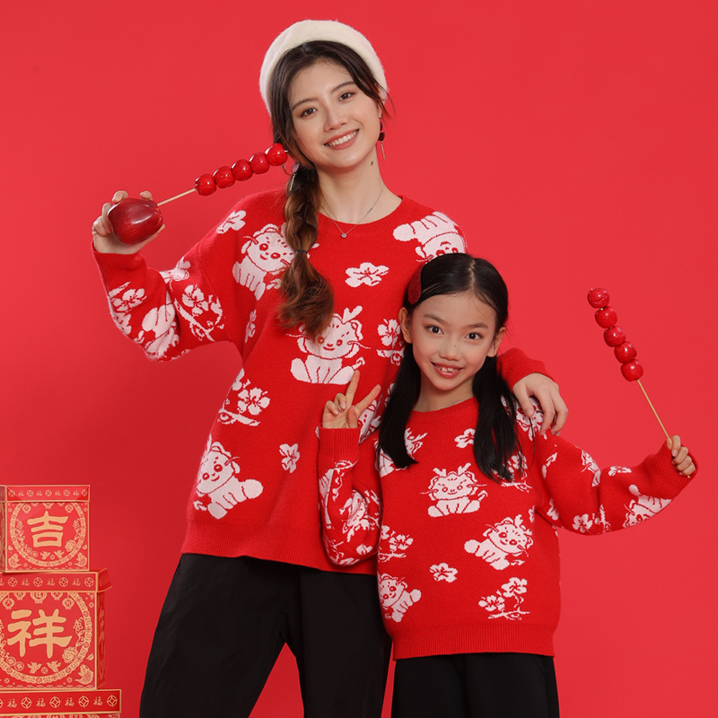 2024 dragon year pro-child clothing winter spring festival red sweater family of three special fried street country wine-female beiyannuu-Taobao