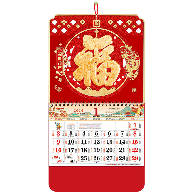 2024 New Dragon Year Large number hanging calendar Home Hanging Wall Creativity Calendar China Wind Wholesale Gold Leaf Fu Character Year Calendar Month of corporate advertising Yellow calendar hands ripping calendar years New Year's New Year's Eve-Taobao