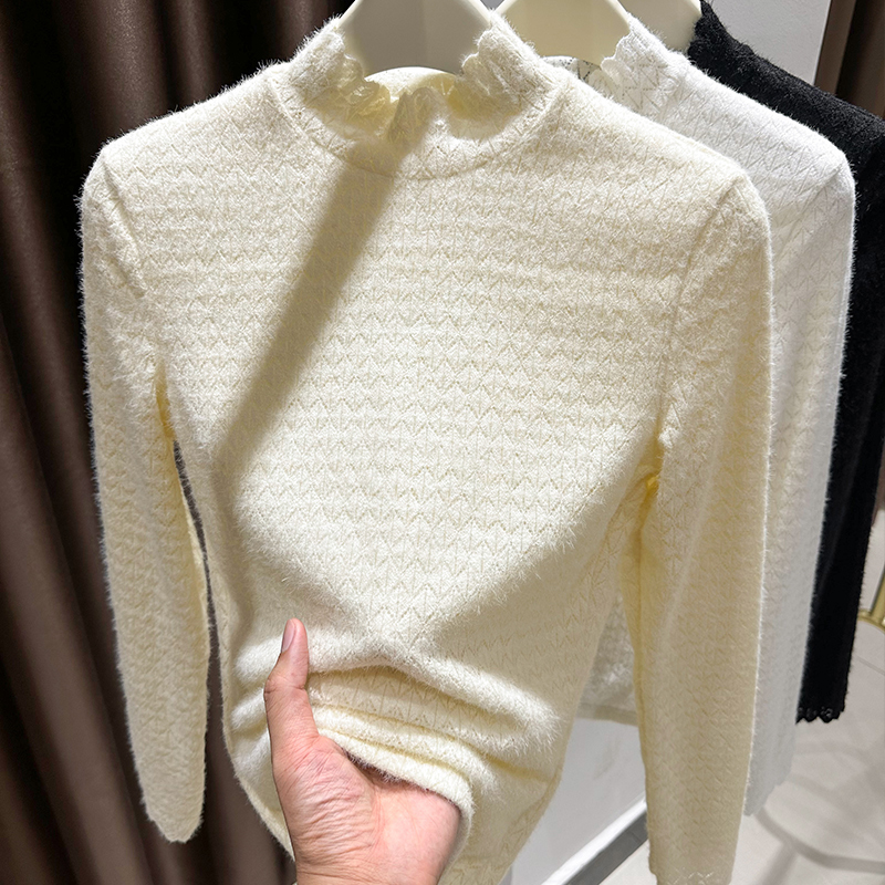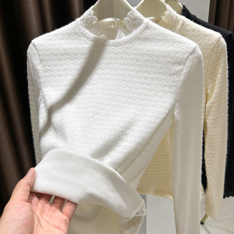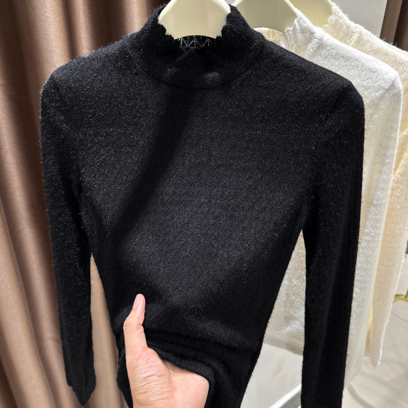 Grinding Wool Plus Suede Lace Undershirt Woman Autumn Winter New Wave Side High Collar Inner Hitch Thickened Silver Fox Suede Net Veil-Taobao