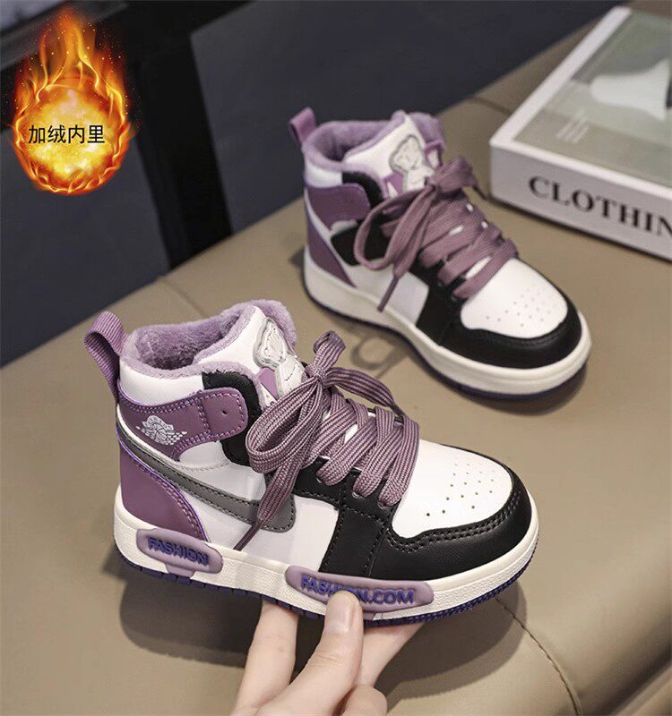 Girl Cotton Shoes Women's Models 2023 New Winter Gush Warm Big Boy Sneakers Junior High School Students Aj High Help Board Shoes-Taobao