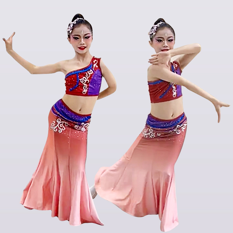 Children Dai ethnic dance Costume Arts of Dai ethnic dress Peach Li Drama Project Purple Pottery for Costume National Dance-Taobao