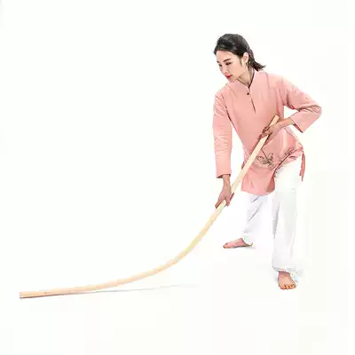 Wushu stick white wax rod open back wooden stick performance Shaolin stick eyebrow stick Taiji long and long red tassel gun stick solid wood stick