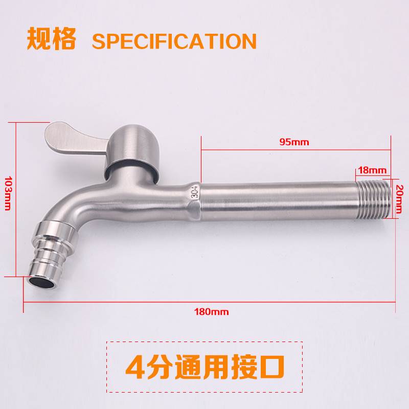 304 stainless steel tap into wall 4 points lengthened special long tap washing machine Handwashing pool Quick switch Single cold water mouth-Taobao